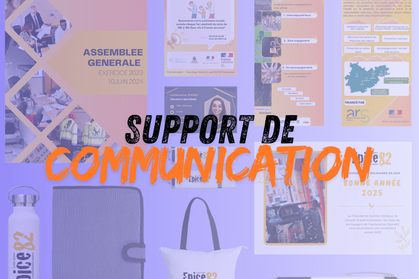 Création et impression de supports personnalisés pour une association du secteur social et médico-social.